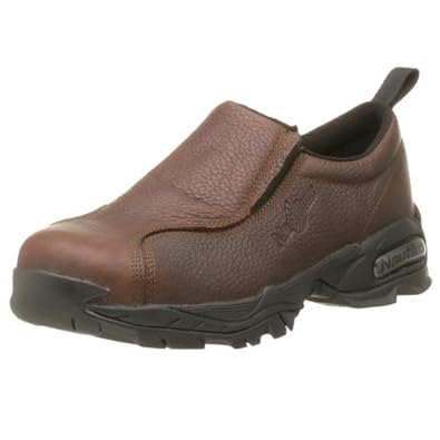 Get the protection of a steel toe with the comfort and convenience of a slip-on. This full-grain, water-resistant brown leather Nautilus shoe is ergonomically-designed. Lightweight but strong enough to keep your feet safe, this slip-on is perfect fit for work or home.
